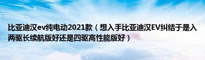大家好,小常来为大家解答以下问题,对于比亚迪汉ev纯电动2021款,想入手比亚迪汉EV纠结于是入两驱长续航版好还是四驱高性能版好很多人还不知道,今天让我们一起来看看吧!