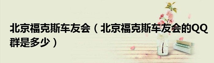 大家好,小常来为大家解答以下问题,对于北京福克斯车友会,北京福克斯车友会的QQ群是多少很多人还不知道,今天让我们一起来看看吧!
