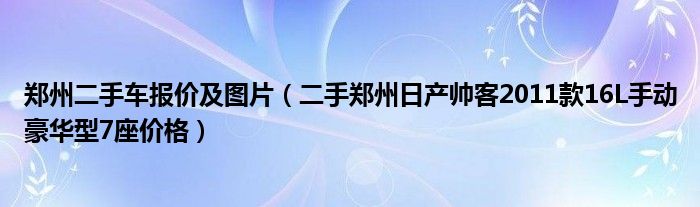 大家好,小常来为大家解答以下问题,对于郑州二手车报价及图片,二手郑州日产帅客2011款16L手动豪华型7座价格很多人还不知道,今天让我们一起来看看吧!