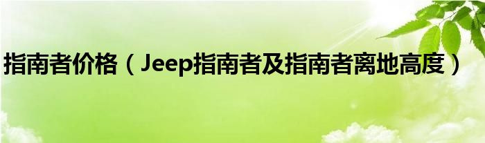 大家好,小常来为大家解答以下问题,对于指南者价格,Jeep指南者及指南者离地高度很多人还不知道,今天让我们一起来看看吧!