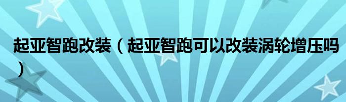 1,起亚智跑可以改装涡轮增压吗 :你好,这款车当然可以加装涡轮增压器了,但是家玩涡轮增压器会影响发动机的使用寿命,所以不建议你安装。