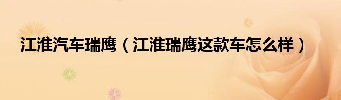 大家好,小常来为大家解答以下问题,对于江淮汽车瑞鹰,江淮瑞鹰这款车怎么样很多人还不知道,今天让我们一起来看看吧!