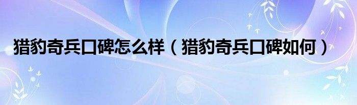 大家好,阳阳来为大家讲解下。猎豹奇兵口碑怎么样,猎豹奇兵口碑如何很多人还不知道,现在让我们一起来看看吧!