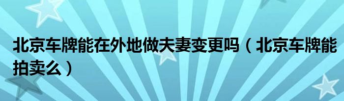 大家好,阳阳来为大家讲解下。北京车牌能在外地做夫妻变更吗,北京车牌能拍卖么很多人还不知道,现在让我们一起来看看吧!