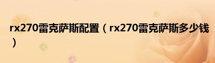 大家好,阳阳来为大家讲解下。rx270雷克萨斯配置,rx270雷克萨斯多少钱很多人还不知道,现在让我们一起来看看吧!