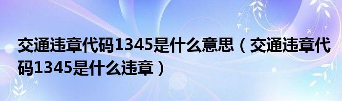 大家好,阳阳来为大家讲解下。交通违章代码1345是什么意思,交通违章代码1345是什么违章很多人还不知道,现在让我们一起来看看吧!