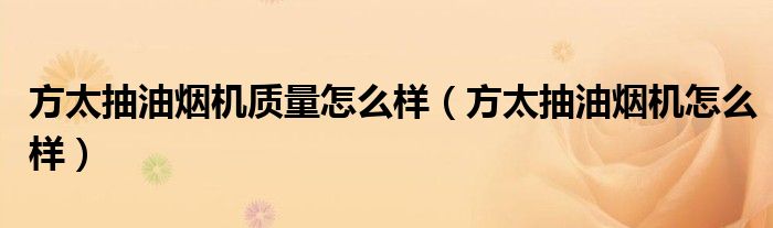 关于方太抽油烟机质量怎么样,方太抽油烟机怎么样这个很多人还不知道,今天菲菲来为大家解答以上的问题,现在让我们一起来看看吧!
