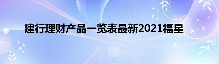 关于建行理财产品一览表最新2021福星这个很多人还不知道,今天菲菲来为大家解答以上的问题,现在让我们一起来看看吧!
