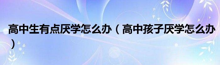 关于高中生有点厌学怎么办,高中孩子厌学怎么办这个很多人还不知道,今天菲菲来为大家解答以上的问题,现在让我们一起来看看吧!