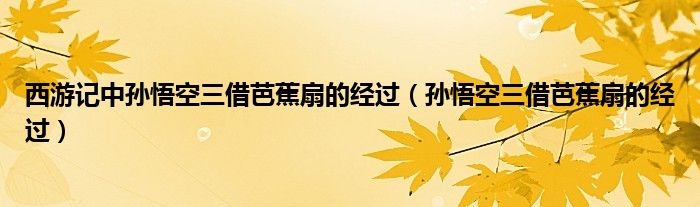 关于西游记中孙悟空三借芭蕉扇的经过,孙悟空三借芭蕉扇的经过这个很多人还不知道,今天菲菲来为大家解答以上的问题,现在让我们一起来看看吧!