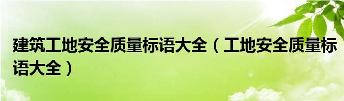 关于建筑工地安全质量标语大全,工地安全质量标语大全这个很多人还不知道,今天菲菲来为大家解答以上的问题,现在让我们一起来看看吧!