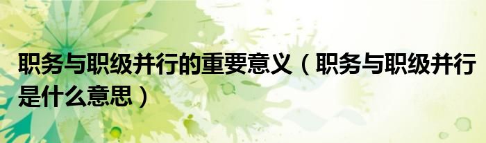 职务与职级并行的重要意义(职务与职级并行是什么意思)