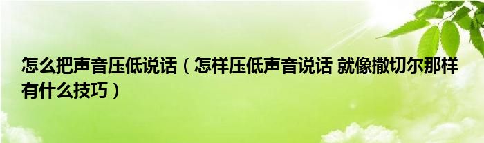 关于怎么把声音压低说话,怎样压低声音说话 就像撒切尔那样 有什么技巧这个很多人还不知道,今天菲菲来为大家解答以上的问题,现在让我们一起来看看吧!