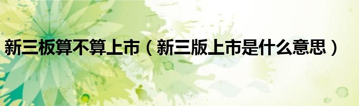 关于新三板算不算上市,新三版上市是什么意思这个很多人还不知道,今天菲菲来为大家解答以上的问题,现在让我们一起来看看吧!