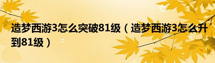 关于造梦西游3怎么突破81级,造梦西游3怎么升到81级这个很多人还不知道,今天菲菲来为大家解答以上的问题,现在让我们一起来看看吧!