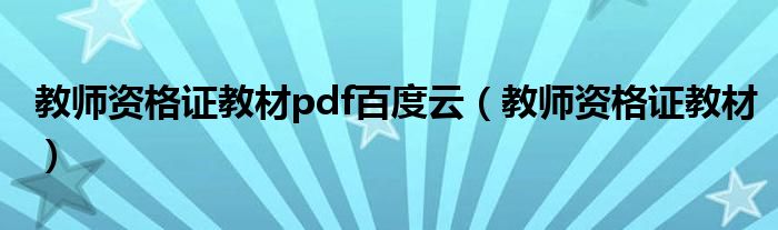 关于教师资格证教材pdf百度云,教师资格证教材这个很多人还不知道,今天菲菲来为大家解答以上的问题,现在让我们一起来看看吧!
