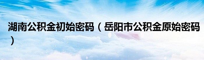 关于湖南公积金初始密码,岳阳市公积金原始密码这个很多人还不知道,今天菲菲来为大家解答以上的问题,现在让我们一起来看看吧!