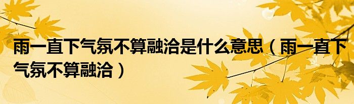 关于雨一直下气氛不算融洽是什么意思,雨一直下气氛不算融洽这个很多人还不知道,今天菲菲来为大家解答以上的问题,现在让我们一起来看看吧!