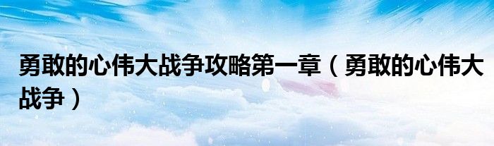 关于勇敢的心伟大战争攻略第一章,勇敢的心伟大战争这个很多人还不知道,今天菲菲来为大家解答以上的问题,现在让我们一起来看看吧!