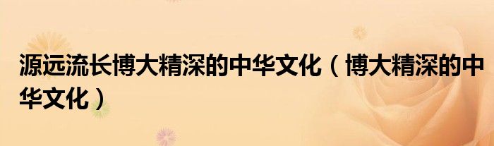 关于源远流长博大精深的中华文化,博大精深的中华文化这个很多人还不知道,今天菲菲来为大家解答以上的问题,现在让我们一起来看看吧!