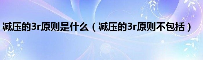 关于减压的3r原则是什么,减压的3r原则不包括这个很多人还不知道,今天菲菲来为大家解答以上的问题,现在让我们一起来看看吧!