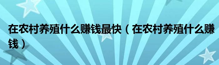 在农村养殖什么赚钱最快(在农村养殖什么赚钱)