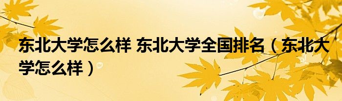 东北大学怎么样 东北大学全国排名(东北大学怎么样)