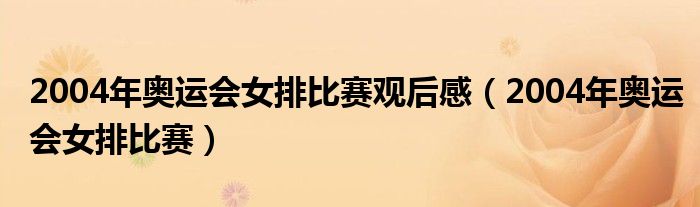 关于2004年奥运会女排比赛观后感,2004年奥运会女排比赛这个很多人还不知道,今天菲菲来为大家解答以上的问题,现在让我们一起来看看吧!