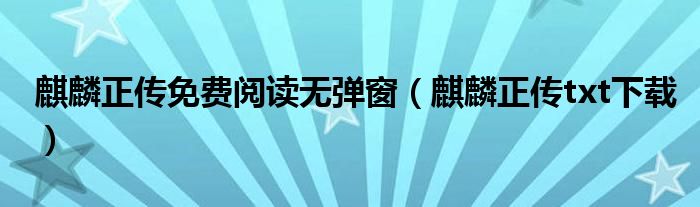 关于麒麟正传免费阅读无弹窗,麒麟正传txt下载这个很多人还不知道,今天菲菲来为大家解答以上的问题,现在让我们一起来看看吧!