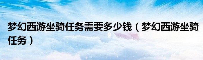 关于梦幻西游坐骑任务需要多少钱,梦幻西游坐骑任务这个很多人还不知道,今天菲菲来为大家解答以上的问题,现在让我们一起来看看吧!