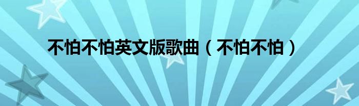 关于不怕不怕英文版歌曲,不怕不怕这个很多人还不知道,今天菲菲来为大家解答以上的问题,现在让我们一起来看看吧!