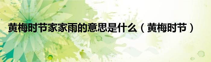 关于黄梅时节家家雨的意思是什么,黄梅时节这个很多人还不知道,今天菲菲来为大家解答以上的问题,现在让我们一起来看看吧!