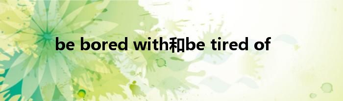 关于be bored with和be tired of这个很多人还不知道,今天菲菲来为大家解答以上的问题,现在让我们一起来看看吧!