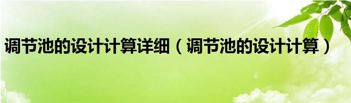 关于调节池的设计计算详细,调节池的设计计算这个很多人还不知道,今天菲菲来为大家解答以上的问题,现在让我们一起来看看吧!
