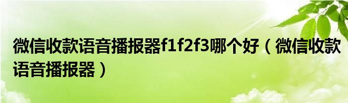 大家好,小晋来为大家解答以下问题,关于微信收款语音播报器f1f2f3哪个好,微信收款语音播报器很多人还不知道,今天让我们一起来看看吧!