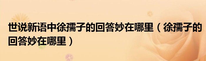 关于世说新语中徐孺子的回答妙在哪里,徐孺子的回答妙在哪里这个很多人还不知道,今天菲菲来为大家解答以上的问题,现在让我们一起来看看吧!