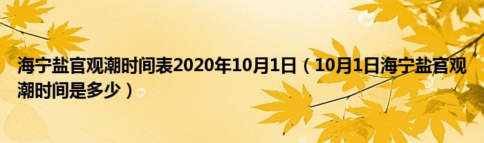 关于海宁盐官观潮时间表2020年10月1日,10月1日海宁盐官观潮时间是多少这个很多人还不知道,今天菲菲来为大家解答以上的问题,现在让我们一起来看看吧!