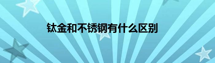 区别有几点:1、存在特征不同。钛是单质,纯净物;不锈钢是混合物(从化学角度)2、性质不同。钛是贵重金属,不锈钢便宜。钛并不是稀有金属,钛在地球上的储藏量是铜、镍、铅、锌的总量的16倍。钛的比重仅是铁的1/2,却像铜一样经得起锤击和拉延。3、化学特性不同在超低温世界里,钛会变得更为坚硬,并有超导体的性能,钢则变得脆弱无能。钛有很强的耐酸碱腐蚀能力。而不锈钢不会产生腐蚀、点蚀、锈蚀或磨损。钛有记忆,不锈钢没有。4、用途不同。不锈钢还是建筑用金属材料中强度最高的材料之一。钛金保存性不强,而不锈钢具有良好的耐腐蚀性。5、处理工艺不同。钛可以耐受更高的温度工艺不一样。钛金是电镀的。香槟金是氧化的。钛金有镀层。香槟金是本身材料色变无镀层。