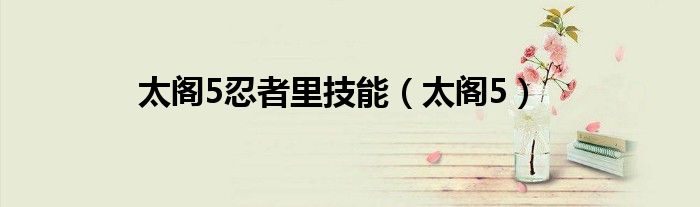关于太阁5忍者里技能,太阁5这个很多人还不知道,今天菲菲来为大家解答以上的问题,现在让我们一起来看看吧!