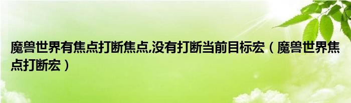 关于魔兽世界有焦点打断焦点,没有打断当前目标宏,魔兽世界焦点打断宏这个很多人还不知道,今天菲菲来为大家解答以上的问题,现在让我们一起来看看吧!