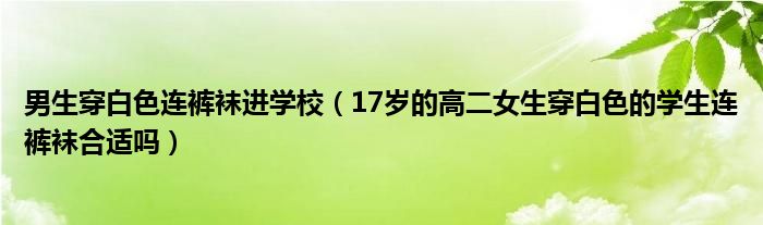 关于男生穿白色连裤袜进学校,17岁的高二女生穿白色的学生连裤袜合适吗这个很多人还不知道,今天菲菲来为大家解答以上的问题,现在让我们一起来看看吧!