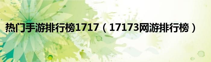 关于热门手游排行榜1717,17173网游排行榜这个很多人还不知道,今天菲菲来为大家解答以上的问题,现在让我们一起来看看吧!