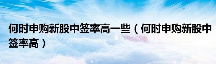 关于何时申购新股中签率高一些,何时申购新股中签率高这个很多人还不知道,今天菲菲来为大家解答以上的问题,现在让我们一起来看看吧!