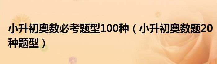 关于小升初奥数必考题型100种,小升初奥数题20种题型这个很多人还不知道,今天菲菲来为大家解答以上的问题,现在让我们一起来看看吧!