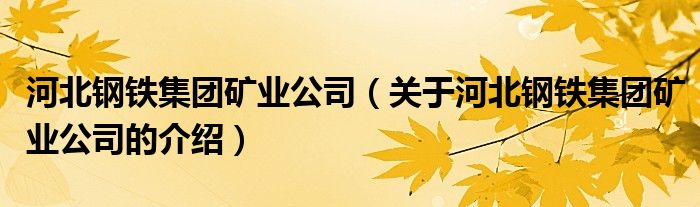 河北钢铁集团矿业公司(关于河北钢铁集团矿业公司的介绍)