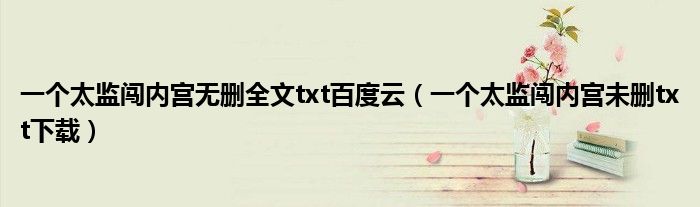 一个太监闯内宫无删全文txt百度云(一个太监闯内宫未删txt下载)