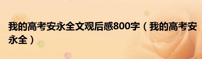 关于我的高考安永全文观后感800字,我的高考安永全这个很多人还不知道,今天菲菲来为大家解答以上的问题,现在让我们一起来看看吧!