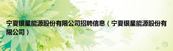 关于宁夏银星能源股份有限公司招聘信息,宁夏银星能源股份有限公司这个很多人还不知道,今天菲菲来为大家解答以上的问题,现在让我们一起来看看吧!