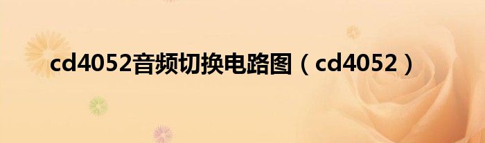 关于cd4052音频切换电路图,cd4052这个很多人还不知道,今天菲菲来为大家解答以上的问题,现在让我们一起来看看吧!