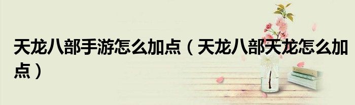 关于天龙八部手游怎么加点,天龙八部天龙怎么加点这个很多人还不知道,今天菲菲来为大家解答以上的问题,现在让我们一起来看看吧!